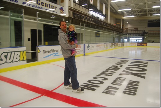 We went to Crookston this past weekend to go ice skating help Lisa and Chandler move into their new house. We managed to squeeze in some ice time though so that Dylan could break in his new skates that he got for his birthday.Miss Avery was excited to try out “skating” as well. She’s only been hearing about it for the last 16, almost 17 months! She couldn’t wait to try it herself. (No skates for her yet. Eric is looking tho.