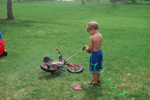 Playing on their swingset. They've really been enjoying it a lot lately.